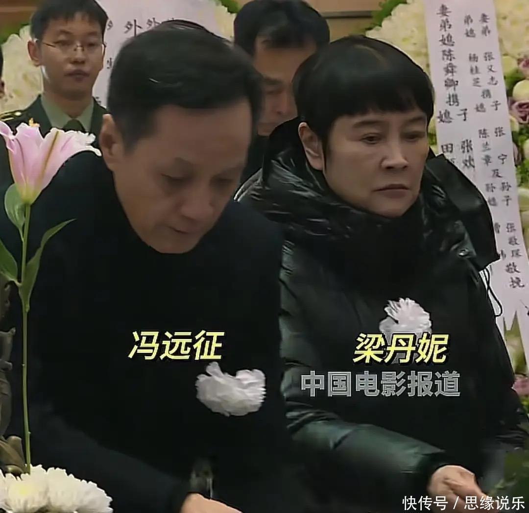 哎,真没想到,翟导就这么走了……八十四岁,按说也算高寿,可一听到消息,心里还是空落落的。那天告别厅里黑压压一片,全是熟面孔——老戏骨们一个个沉默站着,黑衣、白花,连空气都沉得让人喘不过气。 冯远征和梁丹妮并肩进来时,脚步很轻,像怕惊扰了谁。梁丹妮眼睛肿得几乎睁不开,手里那支白菊攥得紧紧的,指尖都发白了。她一向不爱露面,尤其这种场合,可这一回,她来了,还挽着冯远征的手臂——他们叫他“翟叔叔”,不是客套,是几十年的情分,从父辈就扎下了根。